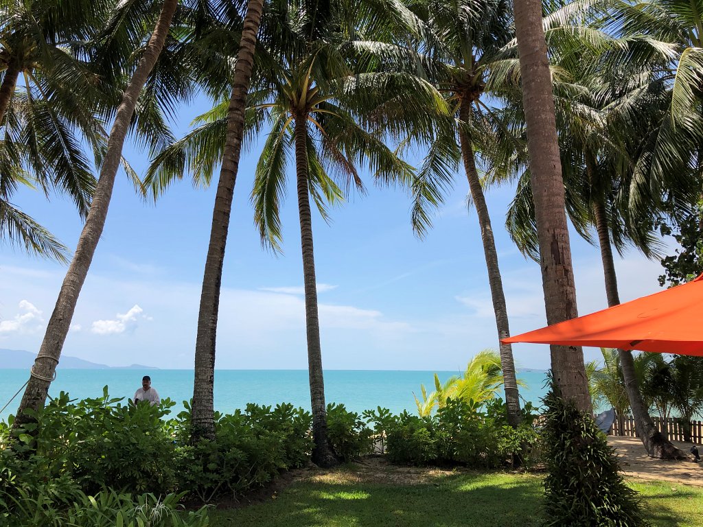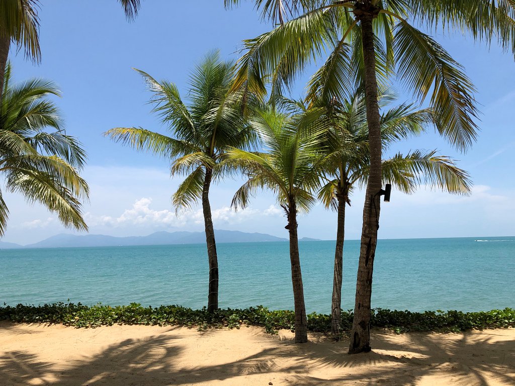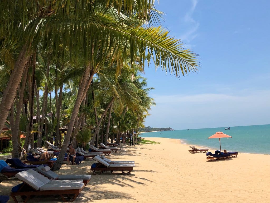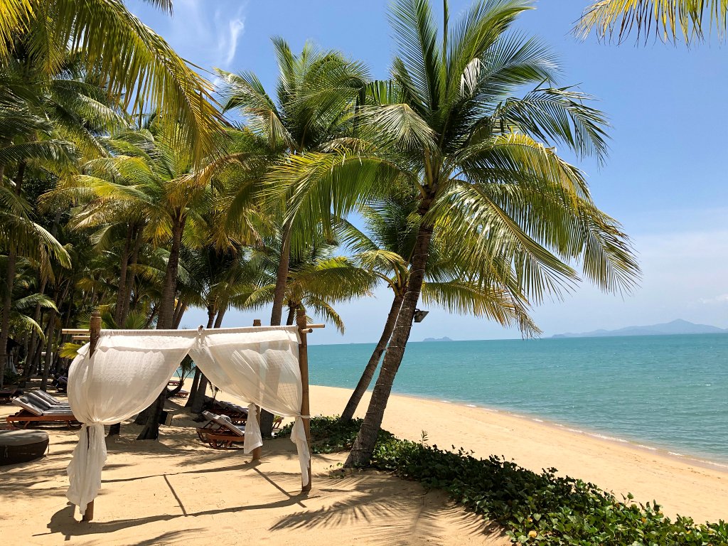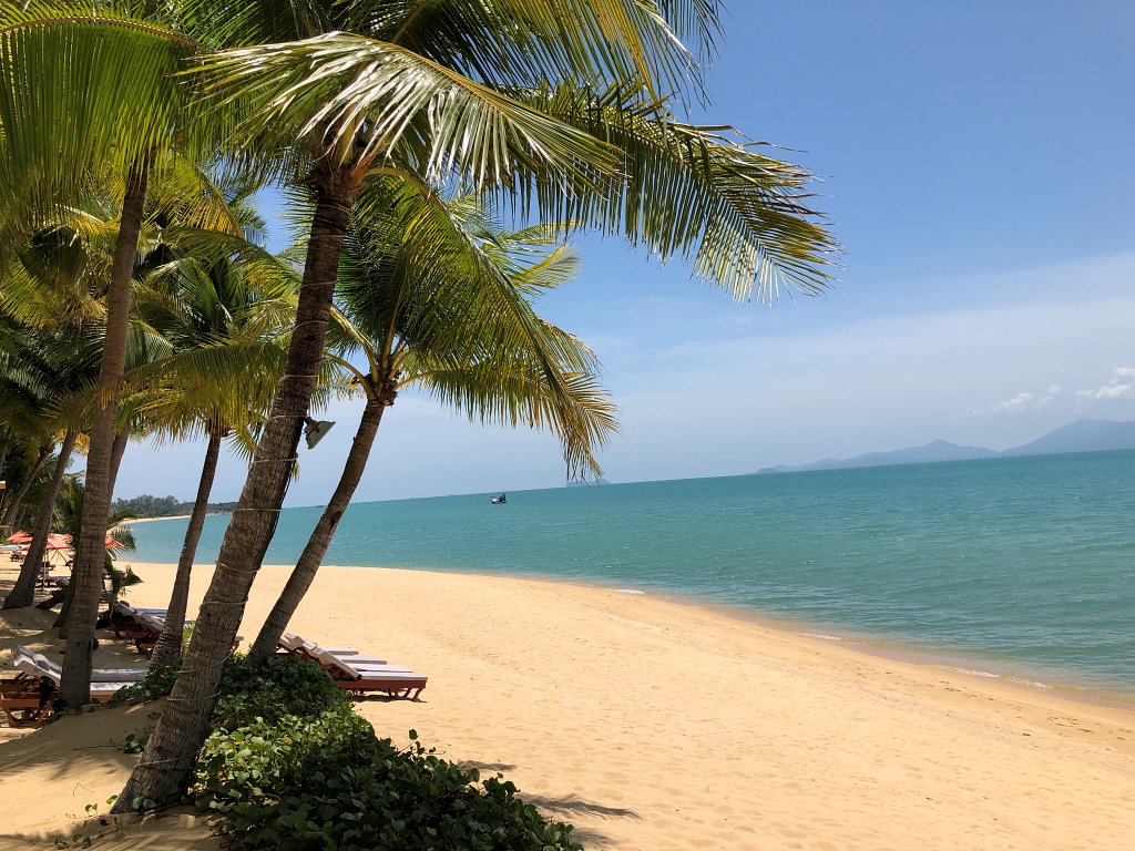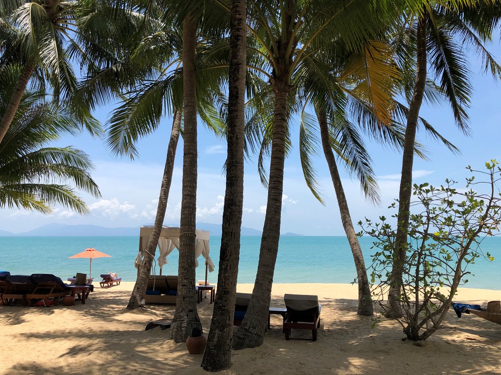 Wow, dieser Strand. So habe ich mir Koh Samui immer vorgestellt. Das Santiburi Resort liegt im ruhigeren nordöstlichen Teil der Insel am langen Sandstrand des Maenam Beach.