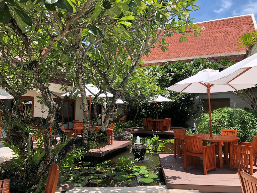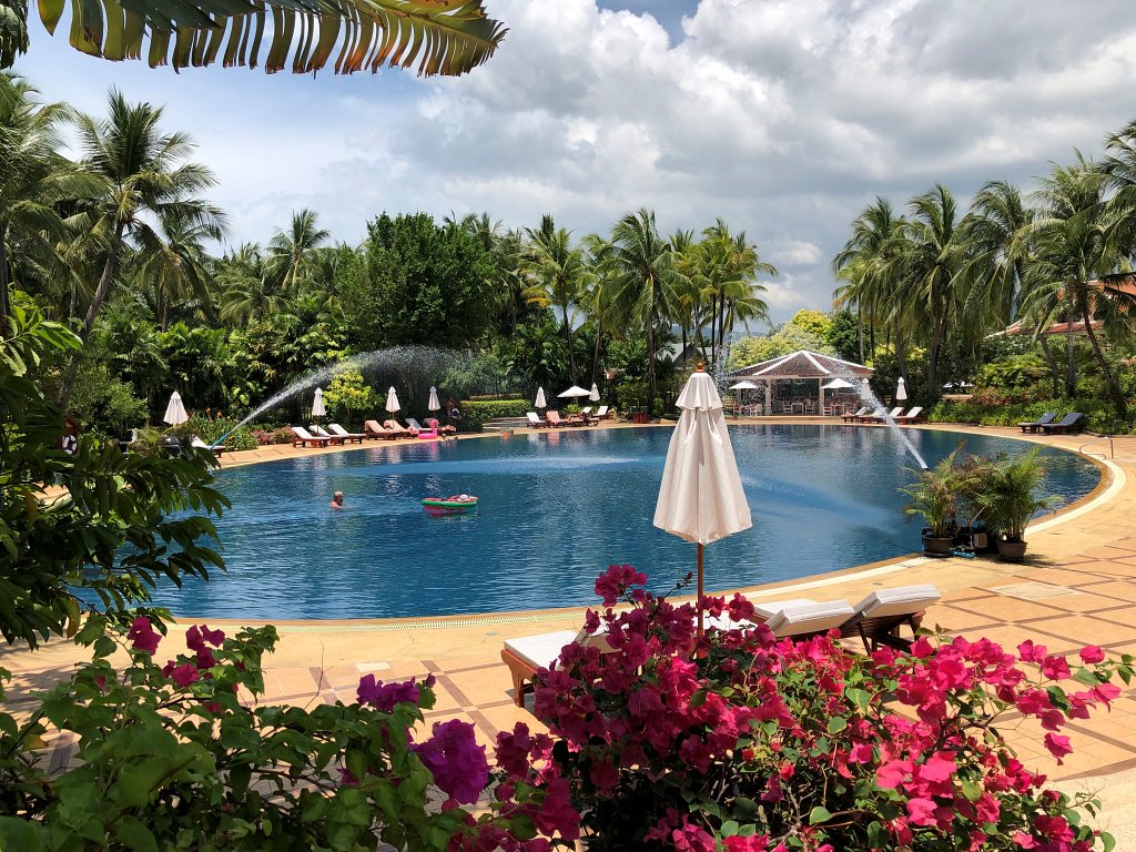 Ein altes Resort? Ja und nein! Ja, im besten Sinne. Den zu jener Zeit als das Santiburi Resort errichtet wurde, war Platz kein Problem. Würde man heute auf dem selben Areal ein neues Resort bauen, so würde man sicher doppelt so viele Villen und noch mehr Gebäude errichten. Im Santiburi ist dagegen viel Platz, viel Grün, viel Garten. Das ist der Luxus eines älteren Resorts. Es wirkt eher wie ein botanischer Garten mit einigen Bungalows denn ein bis auf den letzten Quadratmeter ausgereiztes Resort.
