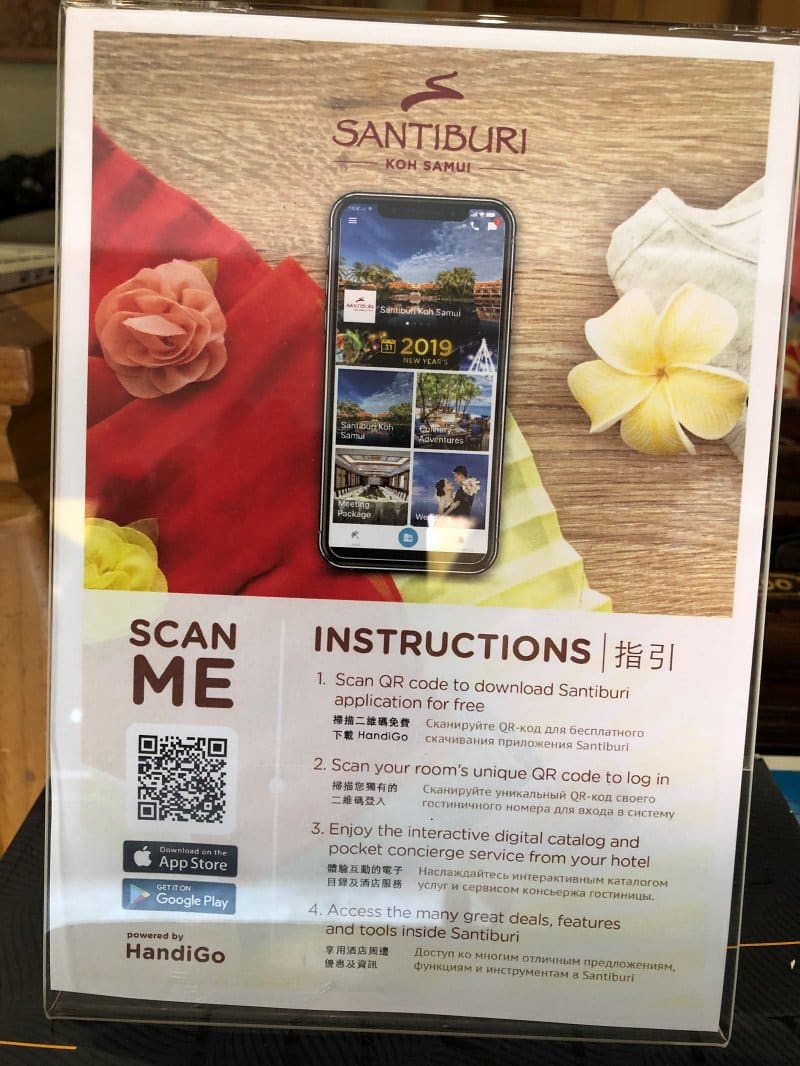 Das Santiburi ist aber nicht alt im Sinne von abgewohnt oder veraltet. Ganz im Gegenteil. Alles ist in bestem Zustand, man merkt, dass man sich kümmert. Die neuen Pool Villen sind im zeitgemäßen Design. Modern ist auch das Informationssystem des Hotels. Es gibt eine App, zugeschnitten auf den gebuchten Zimmertyp, über die man alle wichtigen und interessanten Informationen Abrufen kann, ob nun das tagesaktuelle Aktivitäten-Programm, die Events rund um die Restaurants und vieles mehr. Ein klasse Tool.