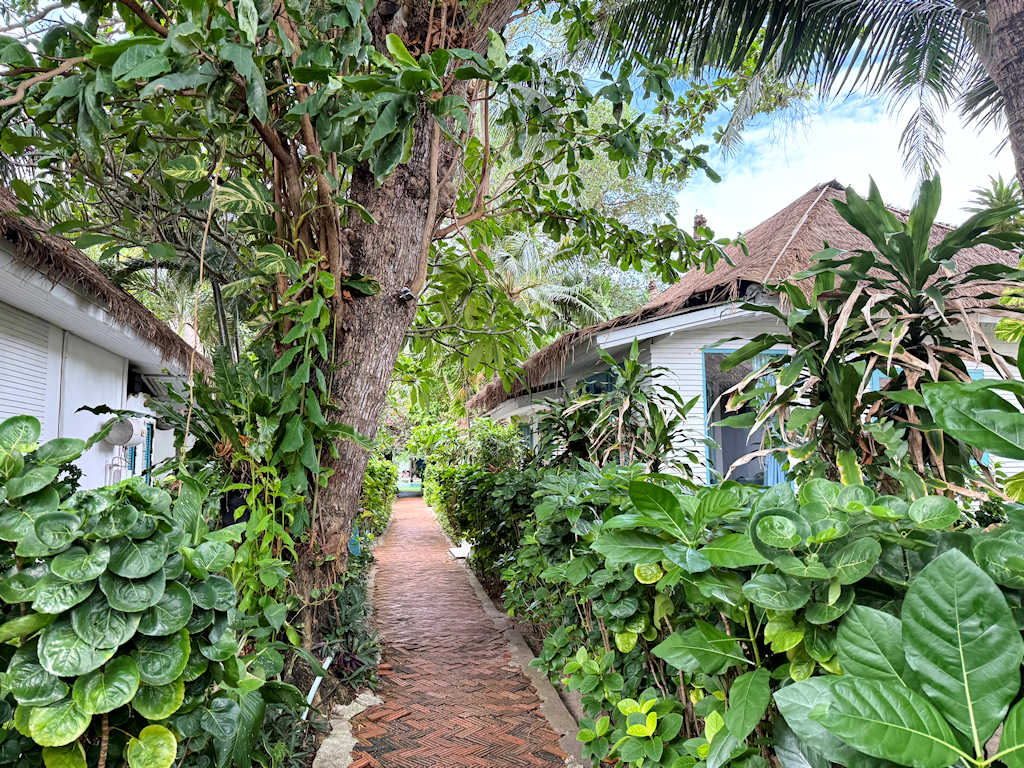 Und es ist ein kleines Hotel. Insgesamt gibt es nur 49 Zimmer und davon liegen 5 Bungalow direkt am Strand. Wenn Sie also hier in so einem zauberhaften Bungalow wohnen wollen, müssen Sie sehr sehr frühzeitig buchen. Von Januar bis Mitte März 2026 ist es schon so gut wie ausgebucht. Für Sommer 2026 ist bereits höchste Zeit geboten. Besser, sie planen jetzt schon für Sommer 2027.